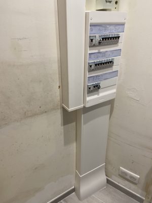 Pour les autres espaces de vie, nous avions enlevé le vieux sol en moquette et nous avons pris en charge l’installation système électrique de l’appartement.